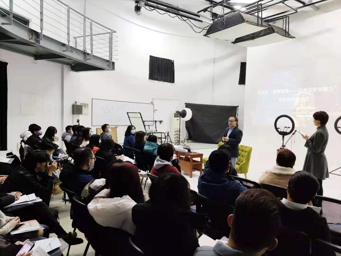 12月13日上午,松江区“直播销售——区专项职业能力”培训项目在我校松江校区艺术楼D楼举行了开班仪式。今年,人力资源社会保障部、市场监管总局等多部门联合发布一批新职业,其中在“互联网营销师”职业下增设了“直播销售员”新职业信息。面对新职业的形成,为提高松江区新职业从业人员职业技能素质,加快形成新职业的人才培养体系,区人力资源社会保障局联合我校3003新葡的京集团网址开设“直播销售(区专项职业能力)”培训项目。该直播销售培训班首次尝试由大学承担政府的社会化培训项目,希望通过本期培训班进一步深化区校合作共育技能人才。