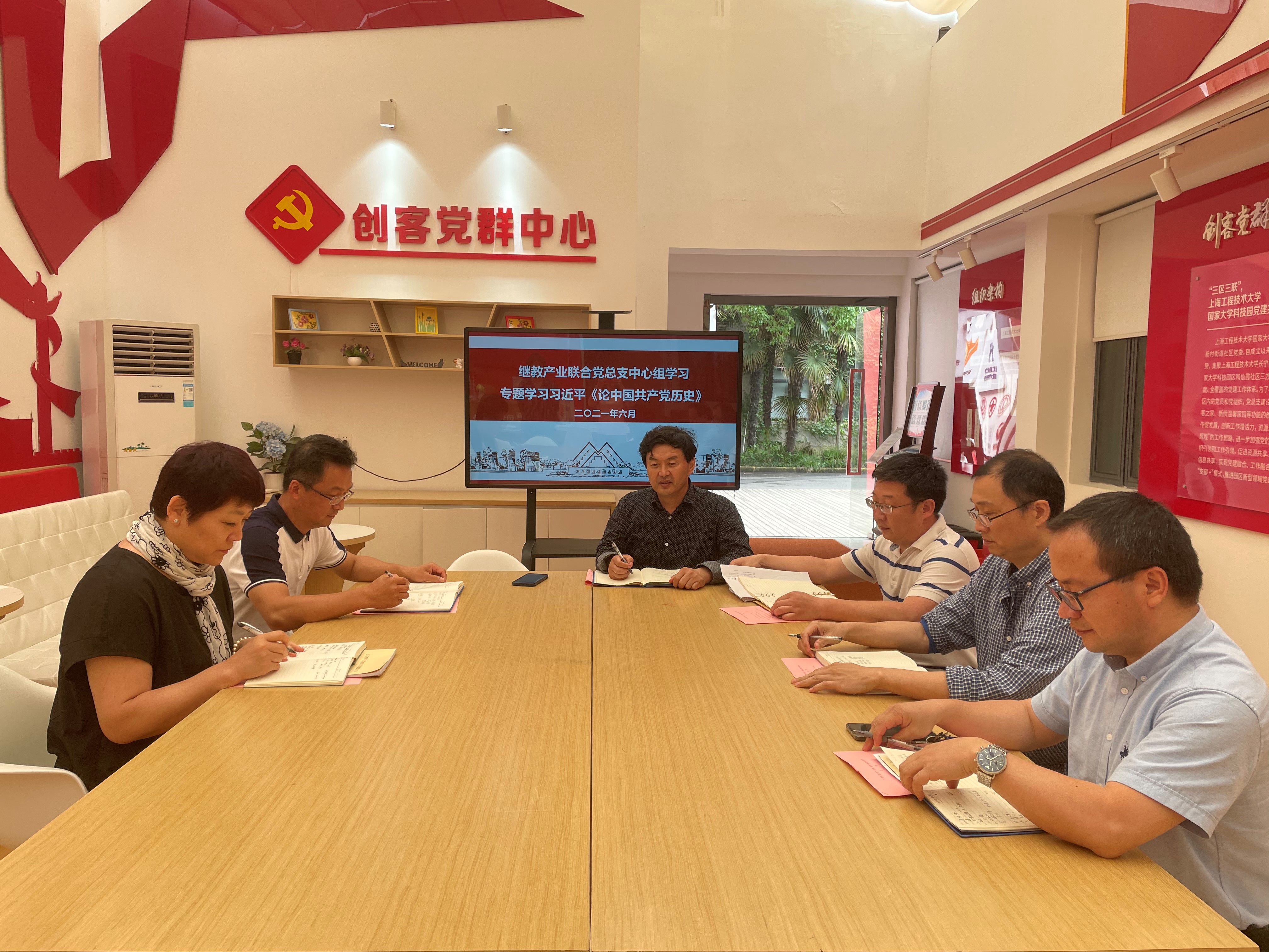 6月4日上午,在长宁校区创客党群中心,继教产业联合党总支中心组开展《论中国共产党历史》专题学习会。本次专题学习会由继教产业联合党总支书记叶枫领学,继教产业联合党总支中心组成员出席会议。