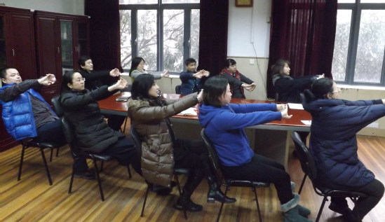 会上,先给大家准备了“新年送健康”――办公室肩颈健身操和手部穴位养生操,会员们随着指令抖肩、扭腰。在轻松欢乐的气氛中,分会会长胡建平向大家作2016年度学院青联分会工作报告,一张张活动照片记录了大家的笑容和收获,会员们一致认为2016年组织的活动内容丰富,形式多样,收益颇多。2017年上半年拟定的活动计划,会员们认真讨论,畅所欲言,为更好地开展青联分会工作提出了合理的建议和意见。院党总支书记叶枫对青联分会2016年的工作成绩予以肯定,并且希望2017年组织的活动更接地气、更加喜闻乐见,把思想引领、团队协作、素质提升融入各项活动,改善学院人文环境和工作氛围,传递正能量。会长胡建平代表学院青联分会作表态,她表示:2017年将以学院青年教职工发展为导向,实实在在地策划和落实更多有内涵、贴近民意的活动,搭建学习成长的平台,充分发挥青联分会凝心聚力的作用。